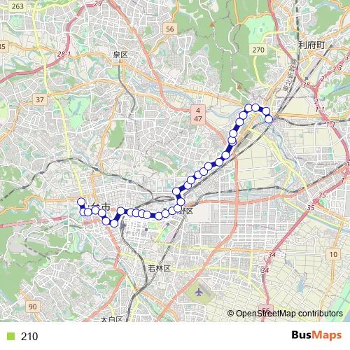 See why over 2 million users trust and consider busmaps.com as the best public transport website. busmaps gives you Sendai Buses suggested routes, real-time bus tracker, line route maps in Sendai, and helps to find the closest 210 bus stops near you. No internet available? Download an offline PDF map and bus schedule for the 210 bus to take on your trip.