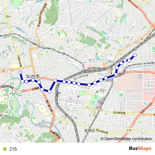 See why over 2 million users trust and consider busmaps.com as the best public transport website. busmaps gives you Sendai Buses suggested routes, real-time bus tracker, line route maps in Sendai, and helps to find the closest 215 bus stops near you. No internet available? Download an offline PDF map and bus schedule for the 215 bus to take on your trip.