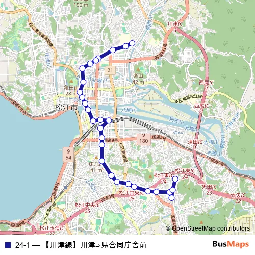 Bus 24-1 - 【川津線】川津⇒県合同庁舎前 Schedule in Matsue