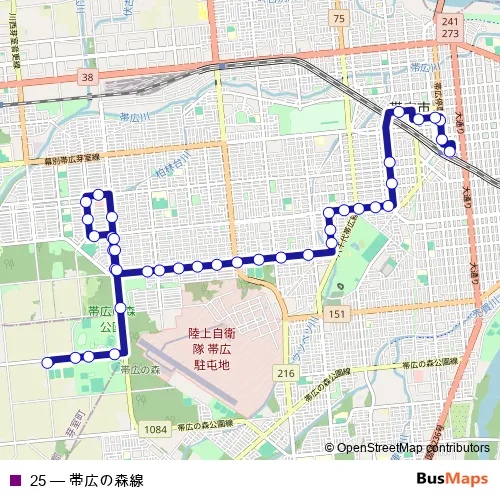 Click here to view the nearest 25 - 帯広の森線 bus stop.
