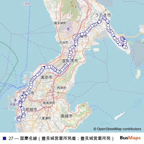 See why over 2 million users trust and consider busmaps.com as the best public transport website. busmaps gives you Uruma Buses suggested routes, real-time bus tracker, line route maps in Uruma, and helps to find the closest 27 bus stops near you. No internet available? Download an offline PDF map and bus schedule for the 27 bus to take on your trip.