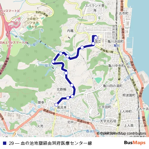 Click here to view the nearest 29 - 血の池地獄経由別府医療センター線 bus stop.