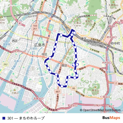 Bus 301 - まちのわループ: Full Schedule in Hiroshima