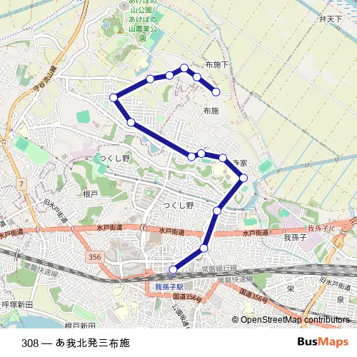 Bus 308 - あ我北発三布施 in Abiko: Stops & Timetable