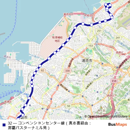 See why over 2 million users trust and consider busmaps.com as the best public transport website. busmaps gives you Urasoe Buses suggested routes, real-time bus tracker, line route maps in Urasoe, and helps to find the closest 32 bus stops near you. No internet available? Download an offline PDF map and bus schedule for the 32 bus to take on your trip.