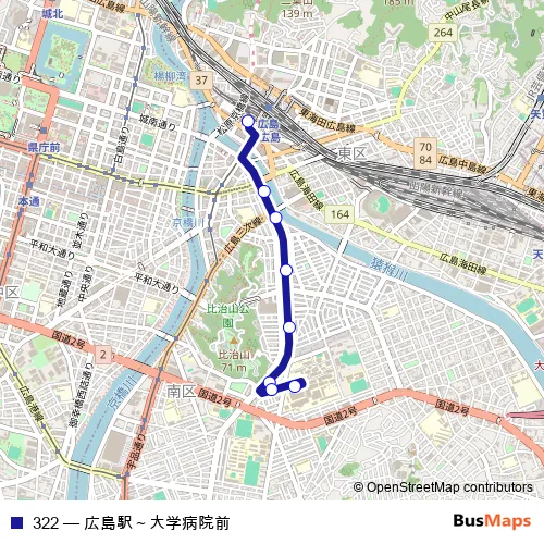 Click here to view the nearest 322 - 広島駅~大学病院前 bus stop.