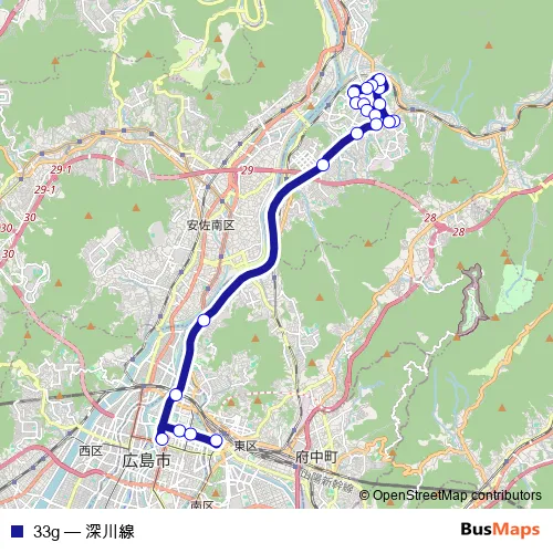 Bus 33g - 深川線: Full Schedule in Hiroshima