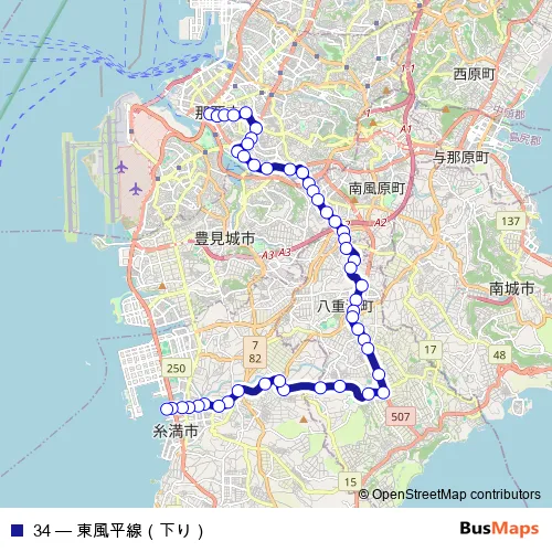 Bus 34 - 東風平線(下り) Schedule in Naha