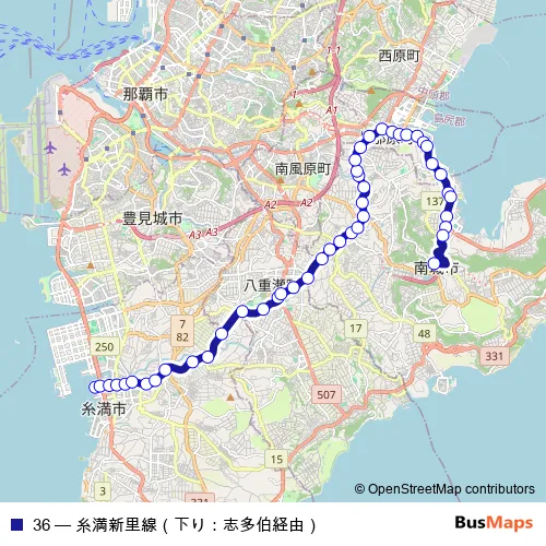 Bus 36 - 糸満新里線(下り:志多伯経由): Full Schedule in Nanjo