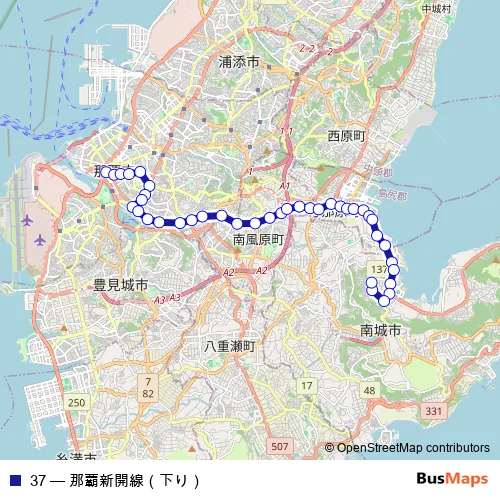 See why over 2 million users trust and consider busmaps.com as the best public transport website. busmaps gives you Naha Buses suggested routes, real-time bus tracker, line route maps in Naha, and helps to find the closest 37 bus stops near you. No internet available? Download an offline PDF map and bus schedule for the 37 bus to take on your trip.