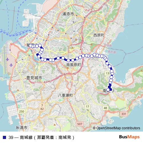 See why over 2 million users trust and consider busmaps.com as the best public transport website. busmaps gives you Naha Buses suggested routes, real-time bus tracker, line route maps in Naha, and helps to find the closest 39 bus stops near you. No internet available? Download an offline PDF map and bus schedule for the 39 bus to take on your trip.