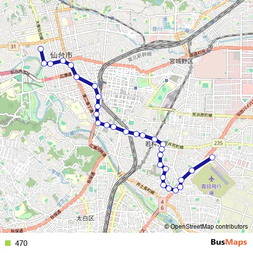 See why over 2 million users trust and consider busmaps.com as the best public transport website. busmaps gives you Sendai Buses suggested routes, real-time bus tracker, line route maps in Sendai, and helps to find the closest 470 bus stops near you. No internet available? Download an offline PDF map and bus schedule for the 470 bus to take on your trip.