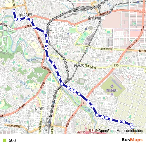 See why over 2 million users trust and consider busmaps.com as the best public transport website. busmaps gives you Sendai Buses suggested routes, real-time bus tracker, line route maps in Sendai, and helps to find the closest 506 bus stops near you. No internet available? Download an offline PDF map and bus schedule for the 506 bus to take on your trip.