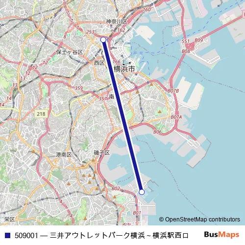 Click here to view the nearest 509001 - 三井アウトレットパーク横浜~横浜駅西口 bus stop.