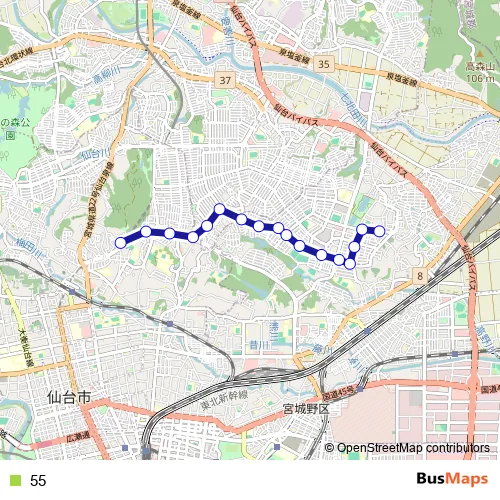 See why over 2 million users trust and consider busmaps.com as the best public transport website. busmaps gives you Sendai Buses suggested routes, real-time bus tracker, line route maps in Sendai, and helps to find the closest 55 bus stops near you. No internet available? Download an offline PDF map and bus schedule for the 55 bus to take on your trip.