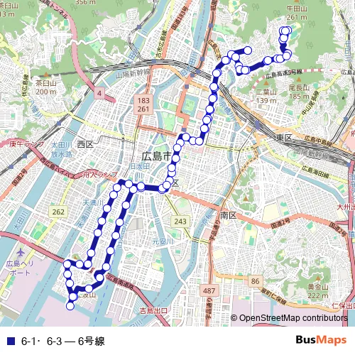 See why over 2 million users trust and consider busmaps.com as the best public transport website. busmaps gives you Hiroshima Buses suggested routes, real-time bus tracker, line route maps in Hiroshima, and helps to find the closest 6-1・6-3 bus stops near you. No internet available? Download an offline PDF map and bus schedule for the 6-1・6-3 bus to take on your trip.