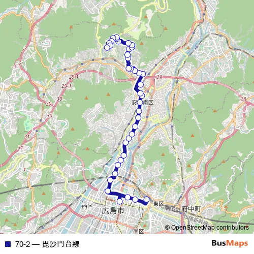 See why over 2 million users trust and consider busmaps.com as the best public transport website. busmaps gives you Hiroshima Buses suggested routes, real-time bus tracker, line route maps in Hiroshima, and helps to find the closest 70-2 bus stops near you. No internet available? Download an offline PDF map and bus schedule for the 70-2 bus to take on your trip.