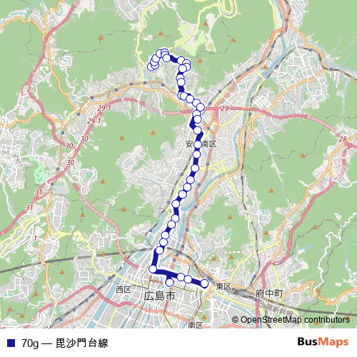 See why over 2 million users trust and consider busmaps.com as the best public transport website. busmaps gives you Hiroshima Buses suggested routes, real-time bus tracker, line route maps in Hiroshima, and helps to find the closest 70g bus stops near you. No internet available? Download an offline PDF map and bus schedule for the 70g bus to take on your trip.