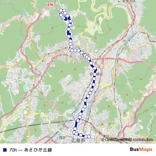 Bus 70h - あさひが丘線: Full Schedule in Hiroshima