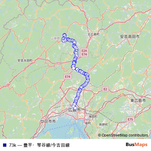 See why over 2 million users trust and consider busmaps.com as the best public transport website. busmaps gives you Hiroshima Buses suggested routes, real-time bus tracker, line route maps in Hiroshima, and helps to find the closest 73k bus stops near you. No internet available? Download an offline PDF map and bus schedule for the 73k bus to take on your trip.