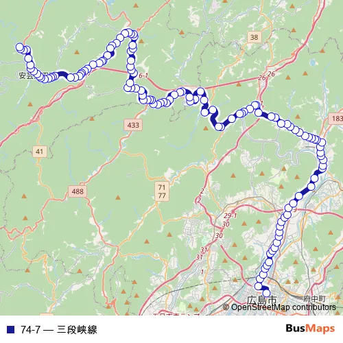Bus 74-7 - 三段峡線 in Hiroshima: Stops & Timetable