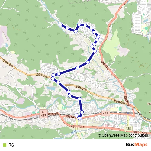 See why over 2 million users trust and consider busmaps.com as the best public transport website. busmaps gives you Sendai Buses suggested routes, real-time bus tracker, line route maps in Sendai, and helps to find the closest 76 bus stops near you. No internet available? Download an offline PDF map and bus schedule for the 76 bus to take on your trip.