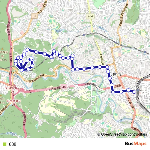 See why over 2 million users trust and consider busmaps.com as the best public transport website. busmaps gives you Sendai Buses suggested routes, real-time bus tracker, line route maps in Sendai, and helps to find the closest 888 bus stops near you. No internet available? Download an offline PDF map and bus schedule for the 888 bus to take on your trip.