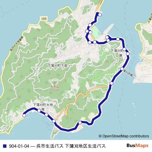 Click here to view the nearest 904-01-04 - 呉市生活バス 下蒲刈地区生活バス bus stop.