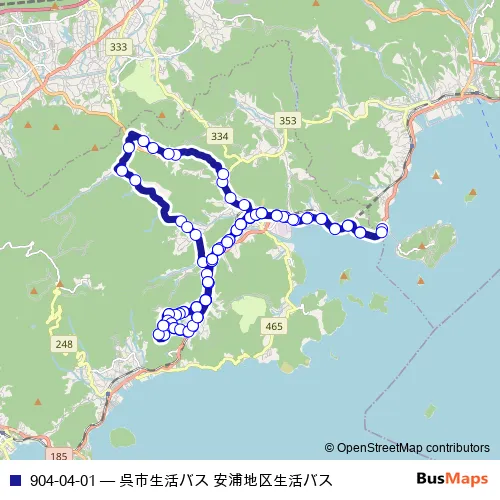 The first stop of the 904-04-01 bus route is 安浦駅 and the last stop is 安浦駅. 904-04-01 (呉市生活バス 安浦地区生活バス) is operational during 毎日.