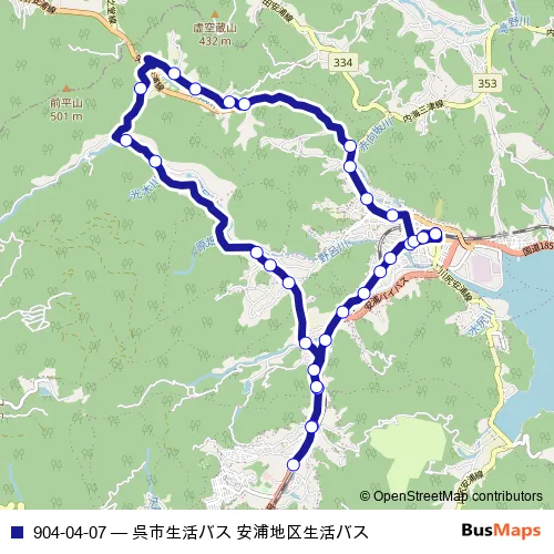 The first stop of the 904-04-07 bus route is 安浦駅 and the last stop is 安浦駅. 904-04-07 (呉市生活バス 安浦地区生活バス) is operational during 毎日.
