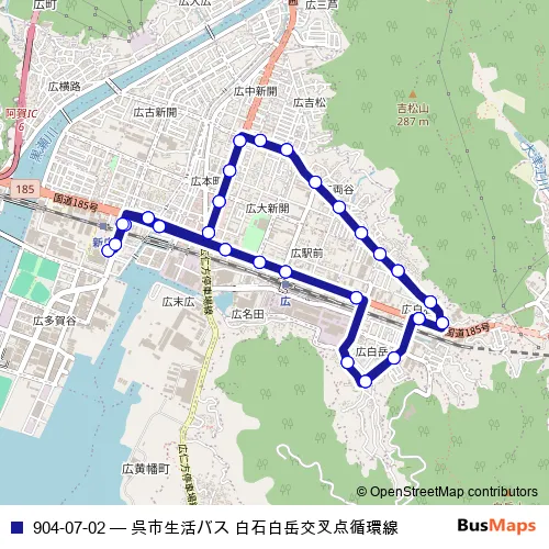 Click here to view the nearest 904-07-02 - 呉市生活バス 白石白岳交叉点循環線 bus stop.