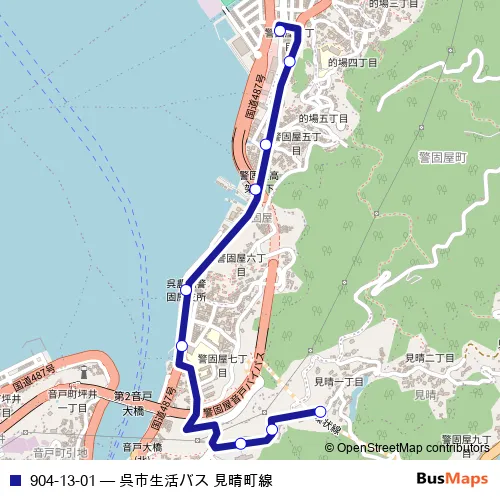 Click here to view the nearest 904-13-01 - 呉市生活バス 見晴町線 bus stop.