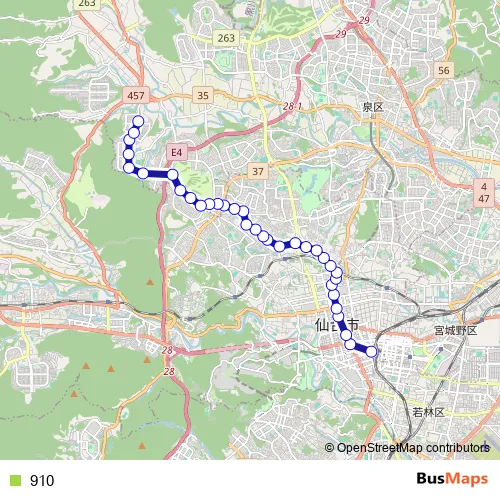 See why over 2 million users trust and consider busmaps.com as the best public transport website. busmaps gives you Sendai Buses suggested routes, real-time bus tracker, line route maps in Sendai, and helps to find the closest 910 bus stops near you. No internet available? Download an offline PDF map and bus schedule for the 910 bus to take on your trip.
