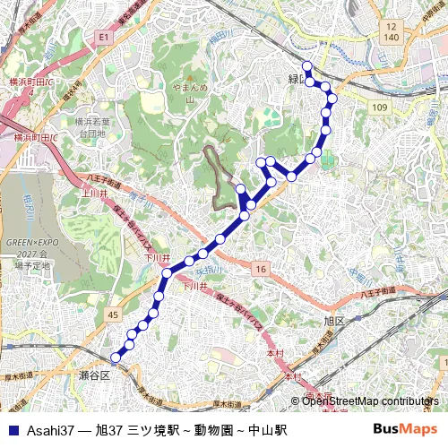 Bus Asahi37 - 旭37 三ツ境駅~動物園~中山駅: Full Schedule in Yamato