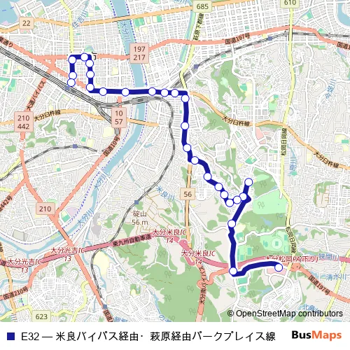 Bus E32 - 米良バイパス経由・萩原経由パークプレイス線 in Oita: Stops & Timetable