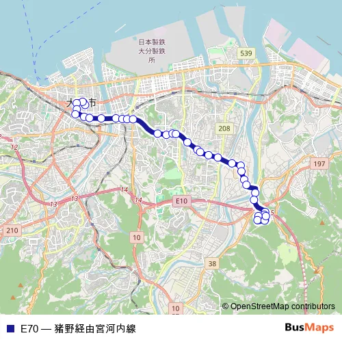 See why over 2 million users trust and consider busmaps.com as the best public transport website. busmaps gives you Oita Buses suggested routes, real-time bus tracker, line route maps in Oita, and helps to find the closest E70 bus stops near you. No internet available? Download an offline PDF map and bus schedule for the E70 bus to take on your trip.