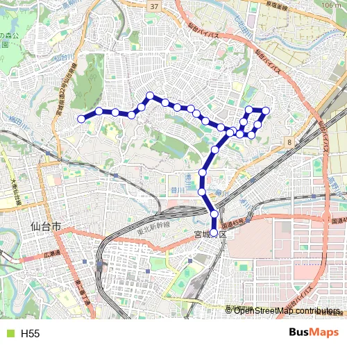 Bus H55 in Sendai: Stops & Timetable