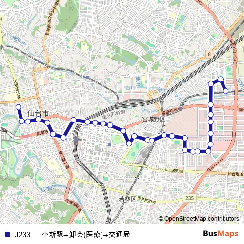 仙台市交通局 J233 小新駅→卸会(医療)→交通局 Bus