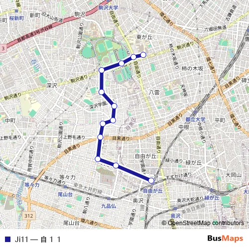 The first stop of the Ji11 bus route is トウキョウイリョウセンター and the last stop is ジユウガオカエキ. Ji11 (自11) is operational during 毎日.