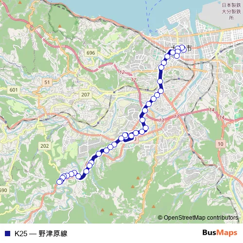 Click here to view the nearest K25 - 野津原線 bus stop.
