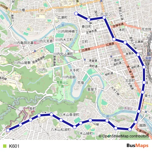 See why over 2 million users trust and consider busmaps.com as the best public transport website. busmaps gives you Sendai Buses suggested routes, real-time bus tracker, line route maps in Sendai, and helps to find the closest K601 bus stops near you. No internet available? Download an offline PDF map and bus schedule for the K601 bus to take on your trip.