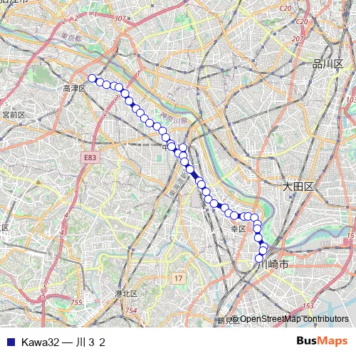 Click here to view the nearest Kawa32 - 川32 bus stop.