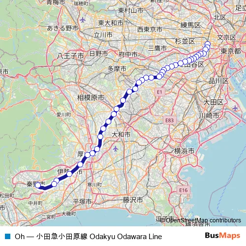 The first stop of the Oh rail route is 新宿 and the last stop is 秦野. Oh (小田急小田原線) is operational during 毎日.