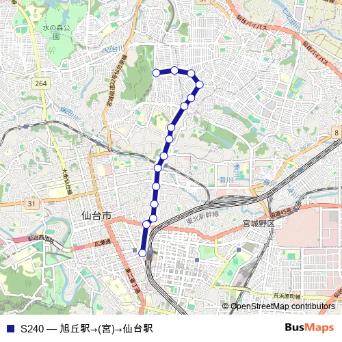 Click here to view the nearest S240 - 旭丘駅→(宮)→仙台駅 bus stop.