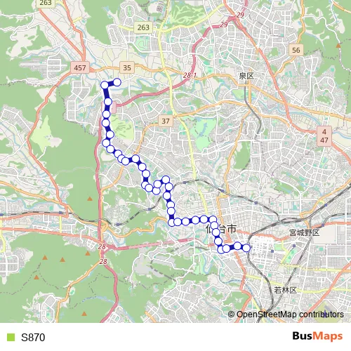 See why over 2 million users trust and consider busmaps.com as the best public transport website. busmaps gives you Sendai Buses suggested routes, real-time bus tracker, line route maps in Sendai, and helps to find the closest S870 bus stops near you. No internet available? Download an offline PDF map and bus schedule for the S870 bus to take on your trip.