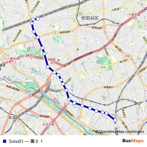 Bus Sono01 - 園01 in Tokyo: Stops & Timetable