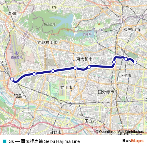 The first stop of the Ss rail route is 小平 and the last stop is 拝島. Ss (西武拝島線) is operational during 毎日.