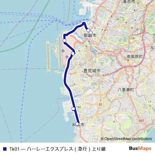 See why over 2 million users trust and consider busmaps.com as the best public transport website. busmaps gives you Naha Buses suggested routes, real-time bus tracker, line route maps in Naha, and helps to find the closest Tk01 bus stops near you. No internet available? Download an offline PDF map and bus schedule for the Tk01 bus to take on your trip.