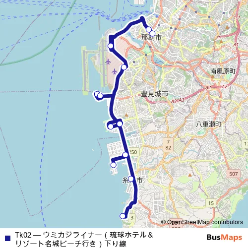 See why over 2 million users trust and consider busmaps.com as the best public transport website. busmaps gives you Naha Buses suggested routes, real-time bus tracker, line route maps in Naha, and helps to find the closest Tk02 bus stops near you. No internet available? Download an offline PDF map and bus schedule for the Tk02 bus to take on your trip.