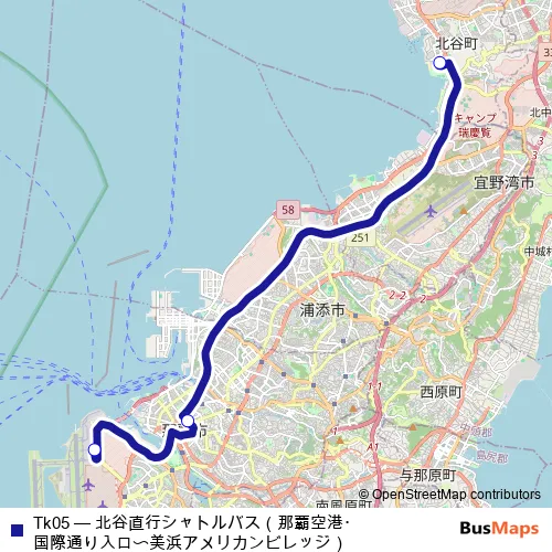 Bus Tk05 - ちゃたんちょっこうしゃとるばす なはくうこう・こくさいどおりいりぐち みはまあめりかんびれっじ Schedule in Naha